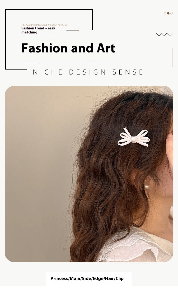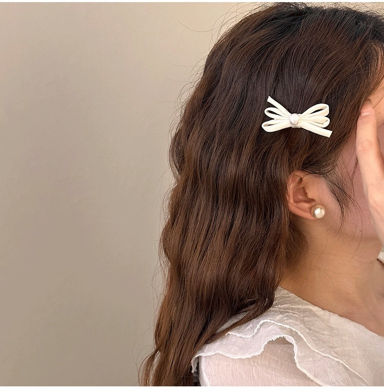 Side Clip Bangs Pearl Bow A Pair Of Hairclips Duckbill Clip
